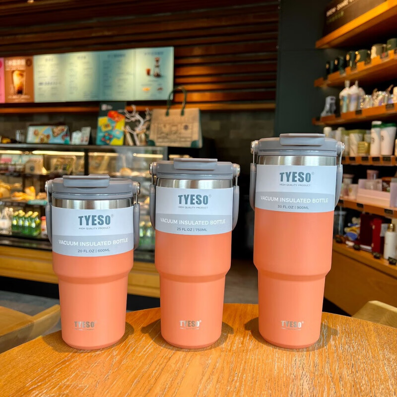 TYESO泰硕不锈钢咖啡杯大容量保温杯女生高颜值保冷车载吸管水杯
