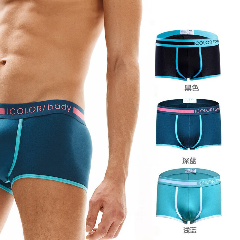 ICOLOR【三条装】青年男士内裤男四角裤纯棉透气个性平角裤舒适大码短裤 【精梳棉】深蓝 黑色 浅蓝 XL