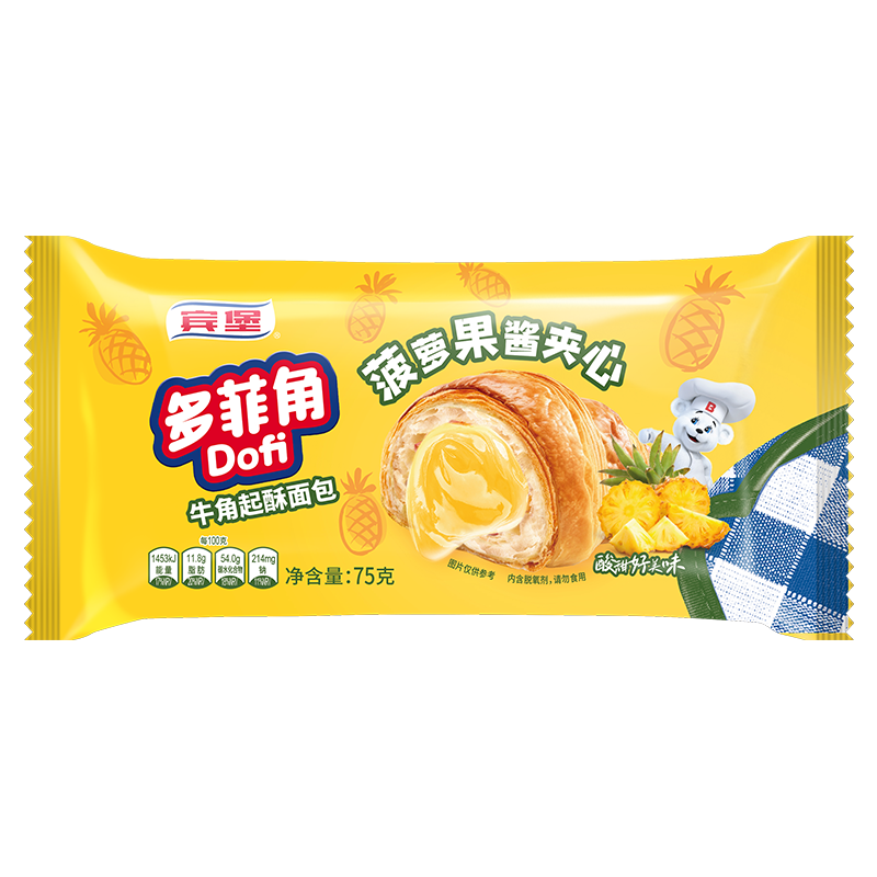 宾堡 多菲角夹心牛角面包 菠萝味75g/袋*10 手撕包点心 源头直发