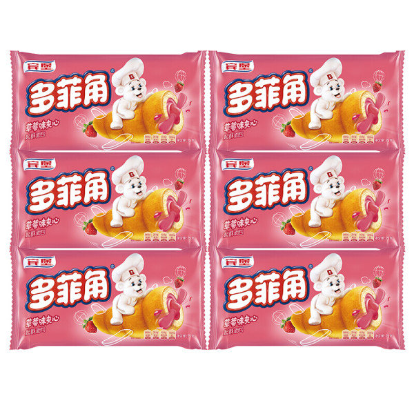 宾堡 多菲角夹心牛角面包 草莓味75g/袋*6 手撕牛角包点心 源头直发