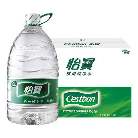 怡宝饮用水 纯净水6L*3桶装水 2箱装