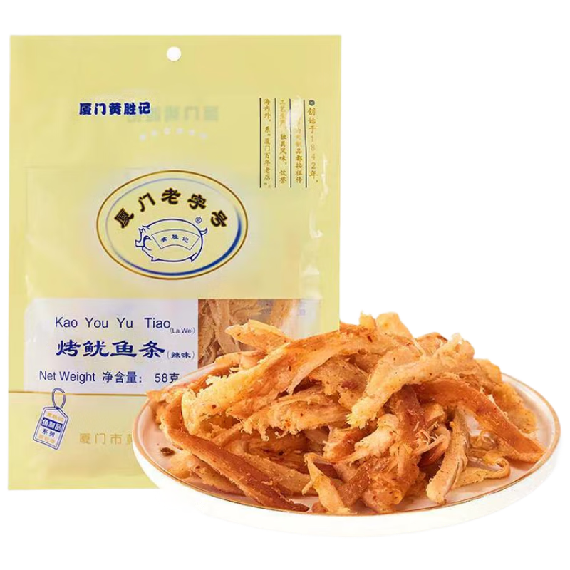 黄胜记 烤鱿鱼条58g 辣味 即食海鲜鱿鱼丝网红小零食福建厦门特产老字号