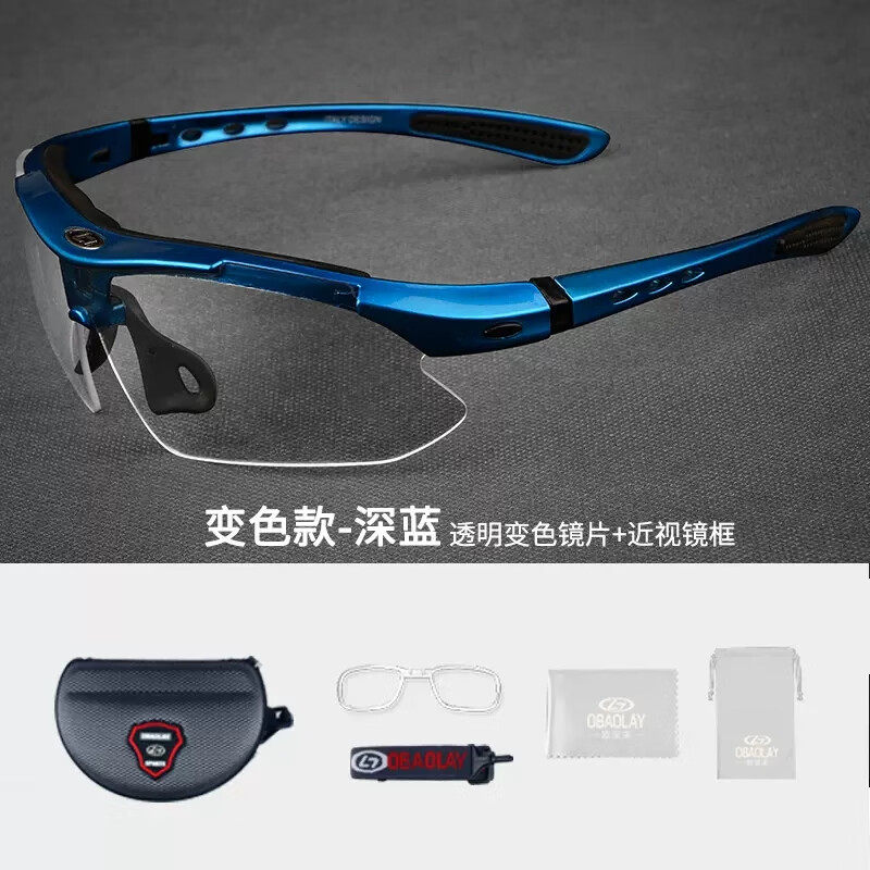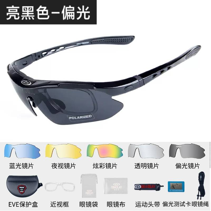 欧宝莱欧宝来骑行眼镜偏光变色近视镜防护眼镜男女自行车跑步防风沙眼镜 经典款黑色(5副镜片)