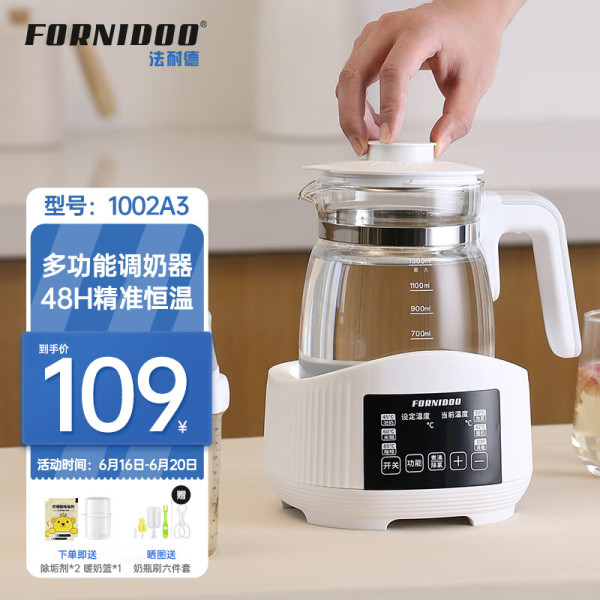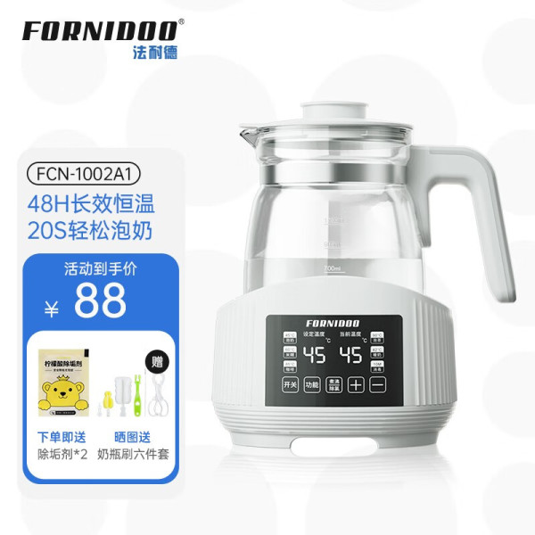 法耐德(FORNIDOO)恒温壶婴儿恒温壶宝宝温奶调奶器冲泡奶粉机家用电热烧水壶保温 304白1100ML
