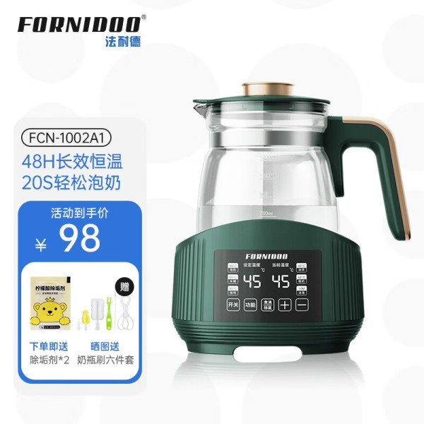 FORNIDOO 法耐德 恒温壶婴儿恒温壶宝宝温奶调奶器冲泡奶粉机家用电热烧水壶保温 304绿1300ML
