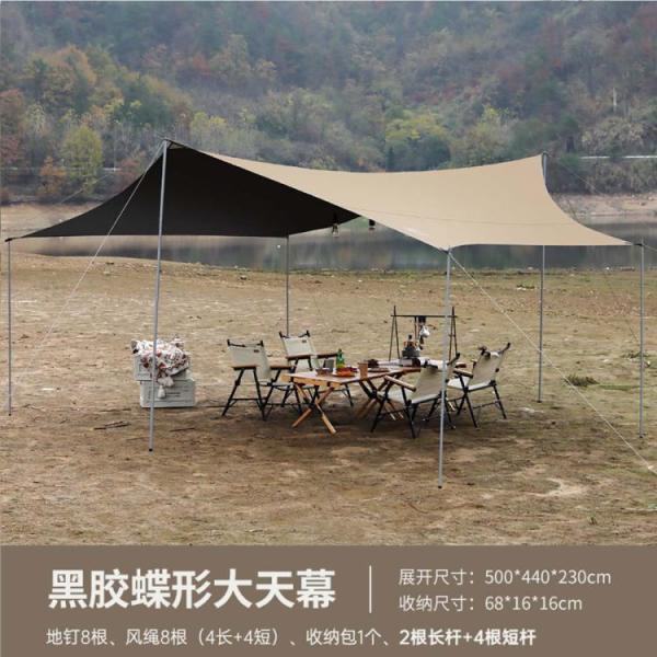公狼 户外露营野餐防雨凉棚黑胶防晒天幕牛津布蝶形六角帐篷大天幕