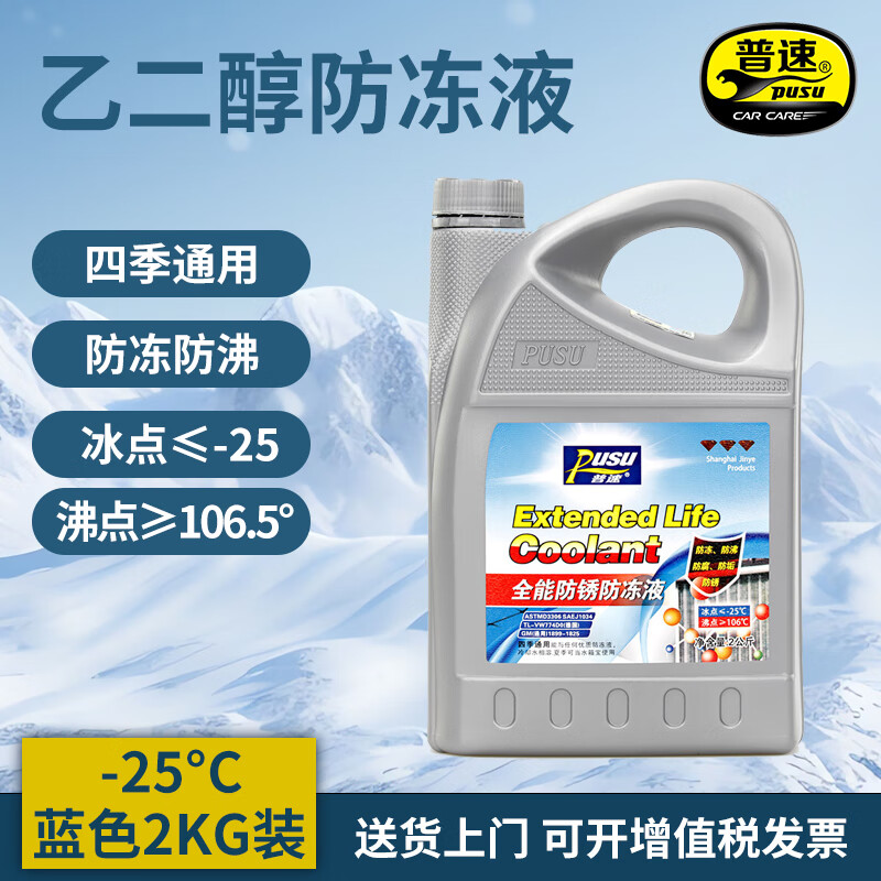 普速PUSU3549汽车摩托车通用防锈防冻液水箱宝冷却液-25℃蓝色2kg