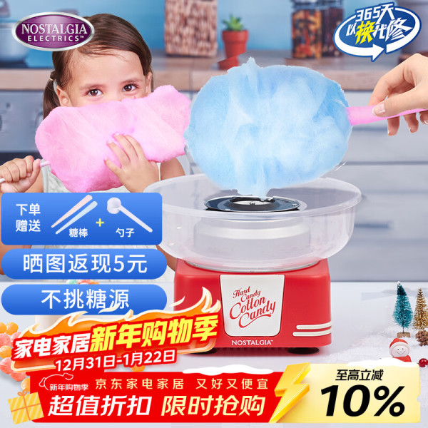NOSTALGIA ELECTRICS棉花糖机器全自动家用小孩子彩糖制作机商用摆摊儿童生日圣诞节情人节新年元旦礼物 PCM405RETRORED