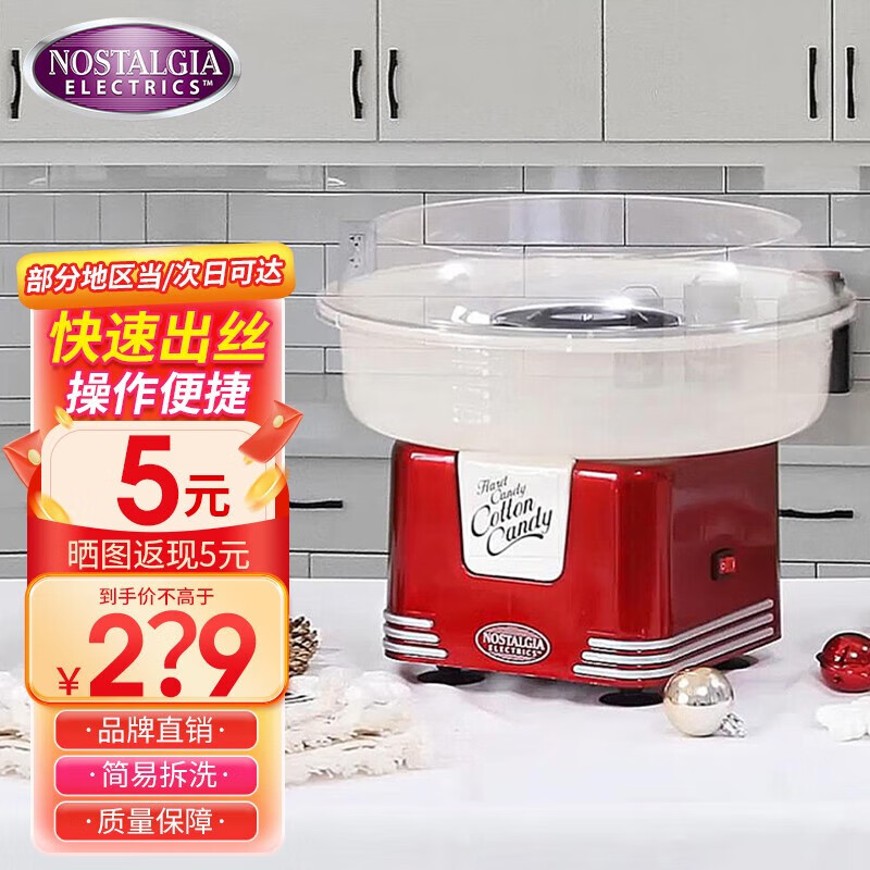 Nostalgia Electrics 诺思得其棉花糖机圣诞礼物女孩家用DIY全自动家用小孩子彩糖制作机摆摊儿童生日礼物