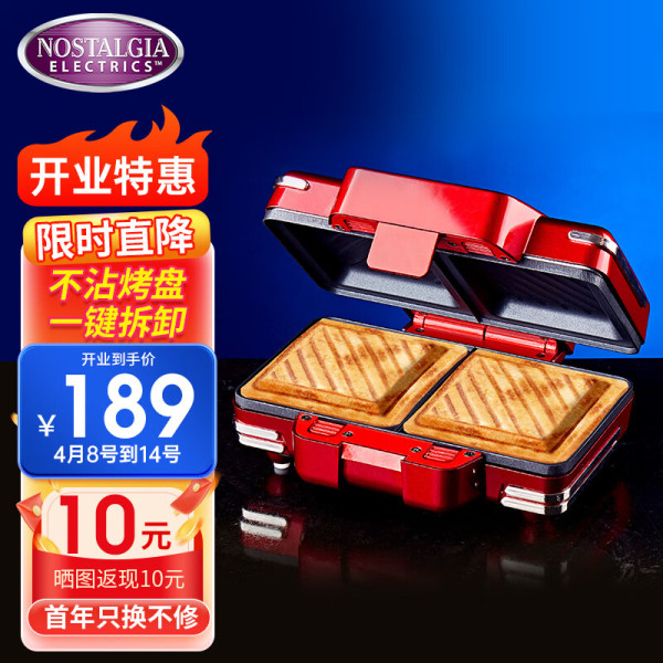 Nostalgia Electrics 三明治机早餐机吐司面包机华夫饼机热压三明治机多功能BSM700