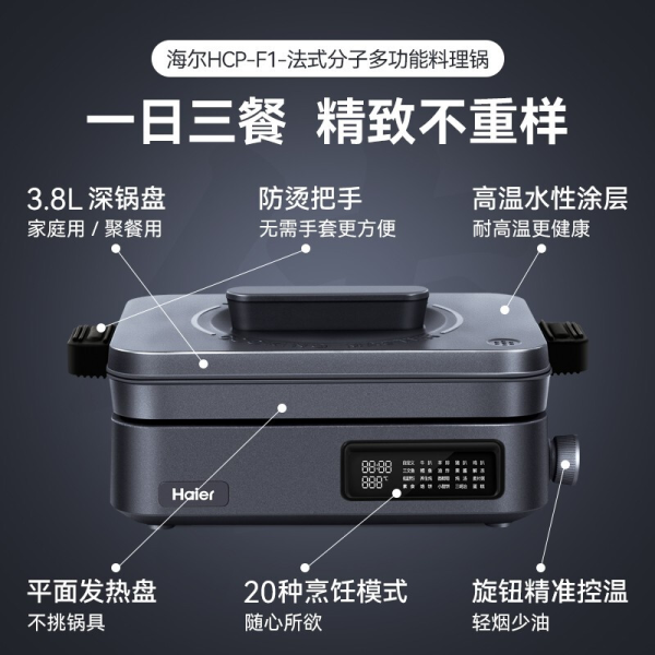 抖音超值购:三菱重工海尔 海尔法式智慧多功能分子料理锅 电火锅烧烤煮粥一体锅