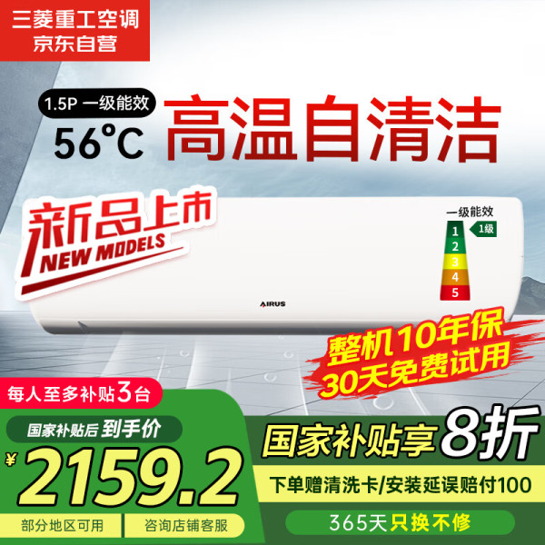 三菱重工海尔 菱重三菱重工旗下1.5匹新一级能效14-22㎡省电变频冷暖空调挂机