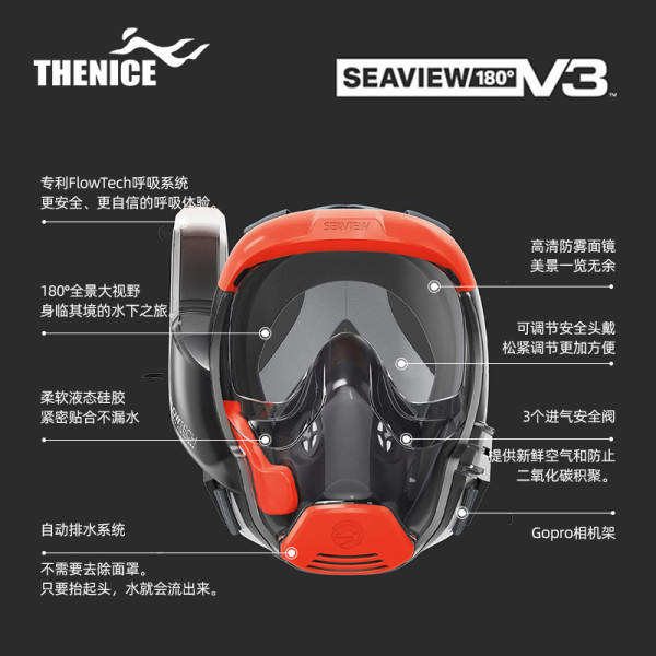THENICE 浮潜面罩潜水镜成人可配近视高清防雾面罩全干式呼吸管潜水装备