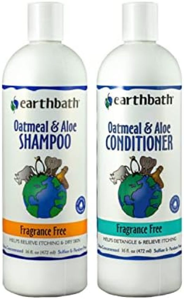 earthbath 燕麦和芦荟洗发水和护发素宠物*套装 - 瘙痒,干性皮肤缓解,美国制造 - 不含香料,16 盎司