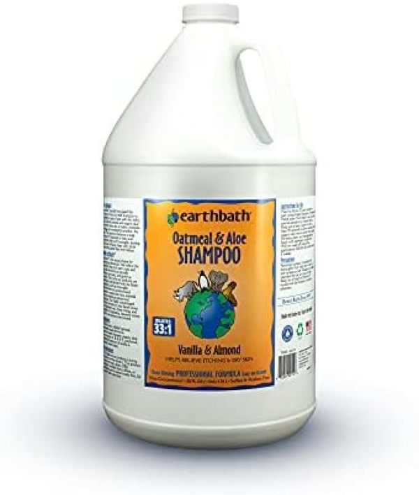earthbath 狗和猫用燕麦和芦荟洗发水 香草和杏仁 128 盎司 3.78L – 适合瘙痒、干性皮肤 – 美国制造