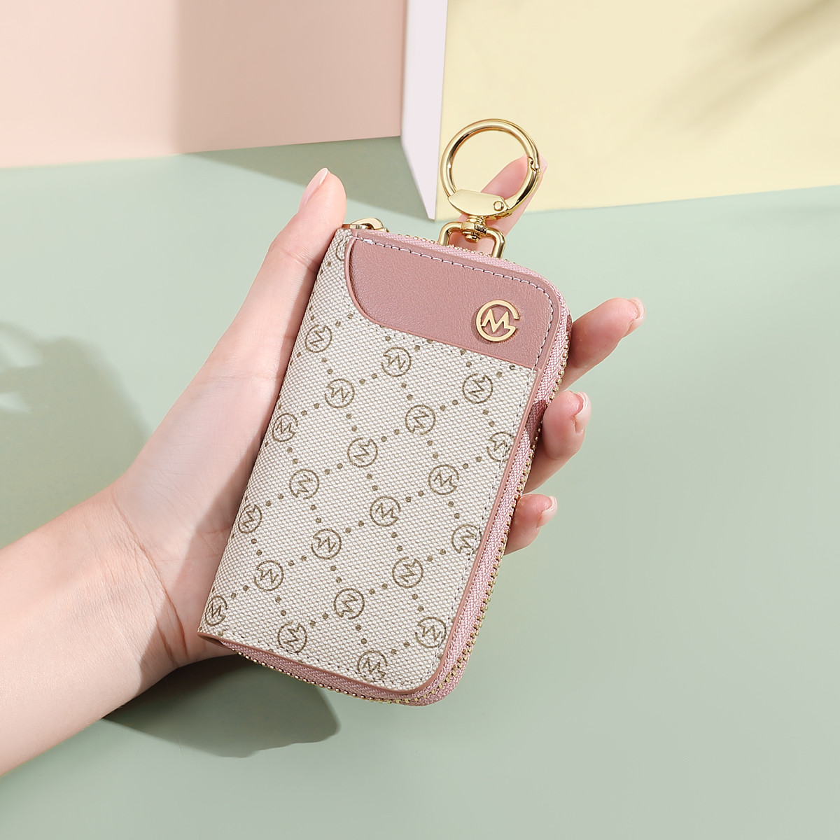GOLF 【精致便捷】复古印花女士印花钥匙包多功能钥匙扣撞色钥匙包女