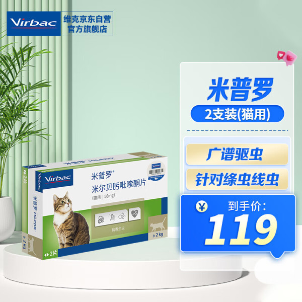 维克(Virbac)米普罗猫咪体内外驱虫药猫用打虫药 防治绦虫吸虫耳螨蛔虫钩虫心丝虫等宠物药品2-4kg