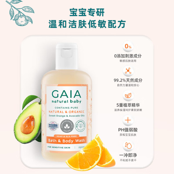 GAIA NATURAL BABY儿童沐浴露甜橙250ml/瓶婴童洗护滋润保湿婴儿澳洲进口