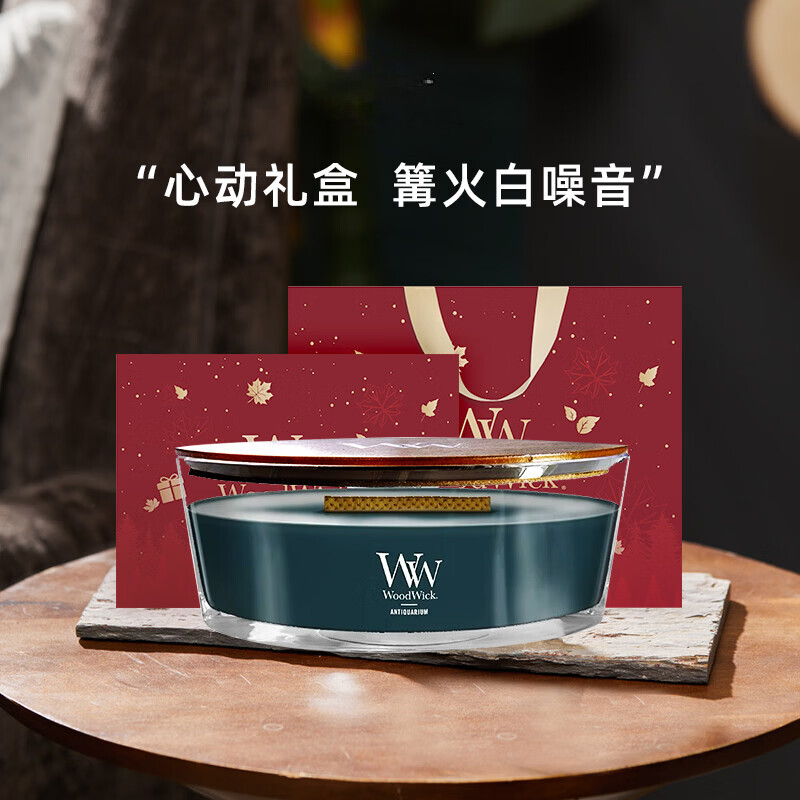 woodwick【生日礼物】进口白噪音海岸线香薰蜡烛礼盒室内香氛送礼心动 【温润木香】红杉木453g礼盒 限定礼盒