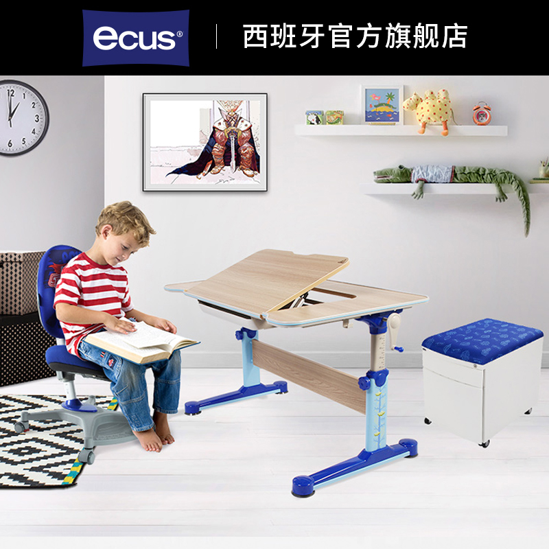 ecus进口儿童学习桌椅套装小学生书课桌可升降家用写字桌椅