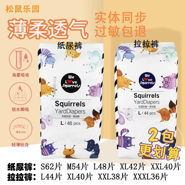 松鼠乐园纸尿裤婴儿拉拉裤超薄透气尿不湿宝宝全包臀学步裤一体裤 1包 纸尿裤S 62片