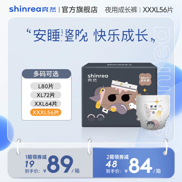 爽然夜用NIGHT成长裤XXXL56片 大吸量拉拉裤超薄婴儿尿不湿 1包 3XL