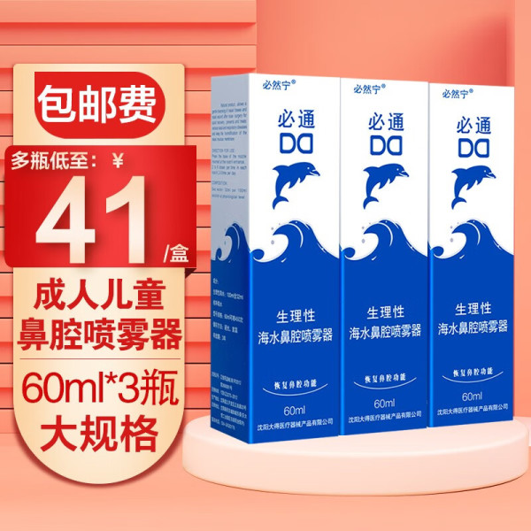 必然宁 必通生理性海水鼻腔喷雾器护理器鼻腔生理性海水儿童成人洗鼻 60ml】买1发2,共2瓶