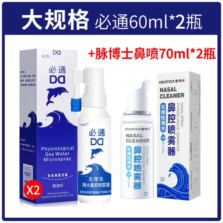 必然宁 必通生理性海水鼻腔喷雾器护理器鼻腔生理性海水儿童成人洗鼻 【买2发4】必通60ml*2 脉博士70ml*2