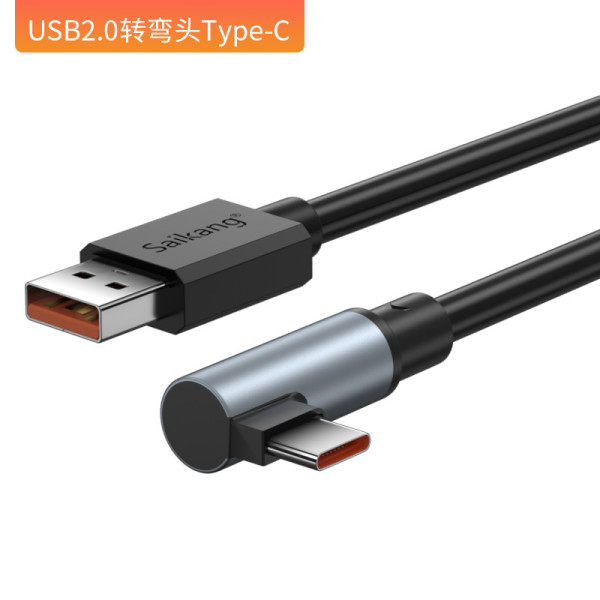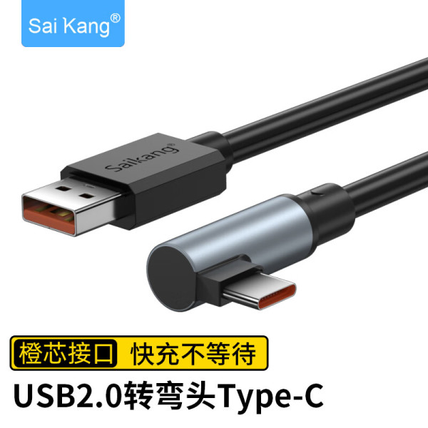赛康 Type-C弯头数据线USB2.0接口L型直角快充线移动电源充电宝用短线尼龙编网便携typec转弯头适用安卓手机1/2米