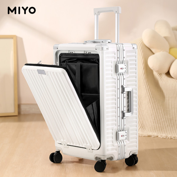 MIYO前开盖多功能行李箱女新款拉杆箱20寸登机箱铝框密码旅行箱男