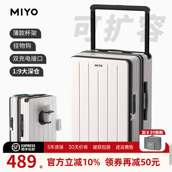 MIYO宽拉杆行李箱女侧开20寸登机箱子前开盖旅行密码皮箱24男