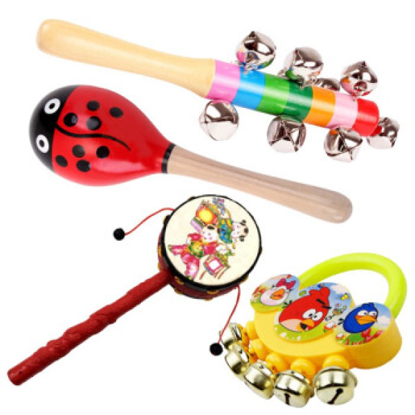 简韵(JianYun) 0-1岁新生婴儿玩具手摇铃铛沙锤铃铛拨浪鼓摇摇棒铃哄孩子4件组合套装乐器玩具 沙锤+棒铃+手摇铃+拨浪鼓(颜色随机)