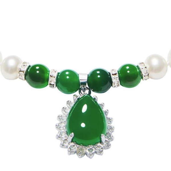 LuckyME 简约925银珍珠玉髓项链 45cm+简约925银珍珠玉髓手链 20cm+简约925银珍珠玉髓耳钉 7.5-8.5cm 华丽款