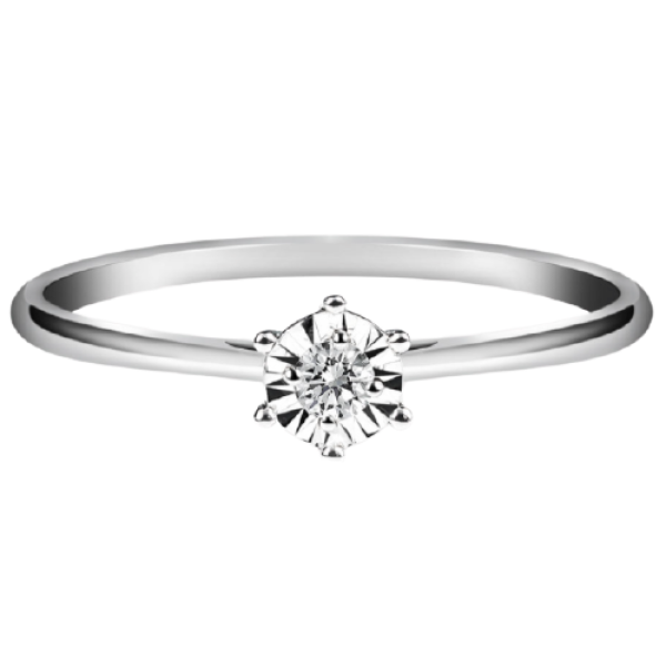 LuckyME 女士圆形18K白金钻石戒指 11号