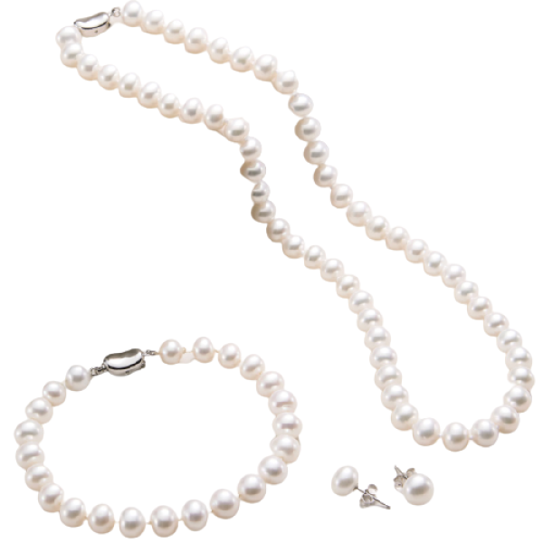 LuckyME 真爱一生925银珍珠项链 45cm+真爱一生925银珍珠手链 20cm+真爱一生925银珍珠耳钉 8-9mm