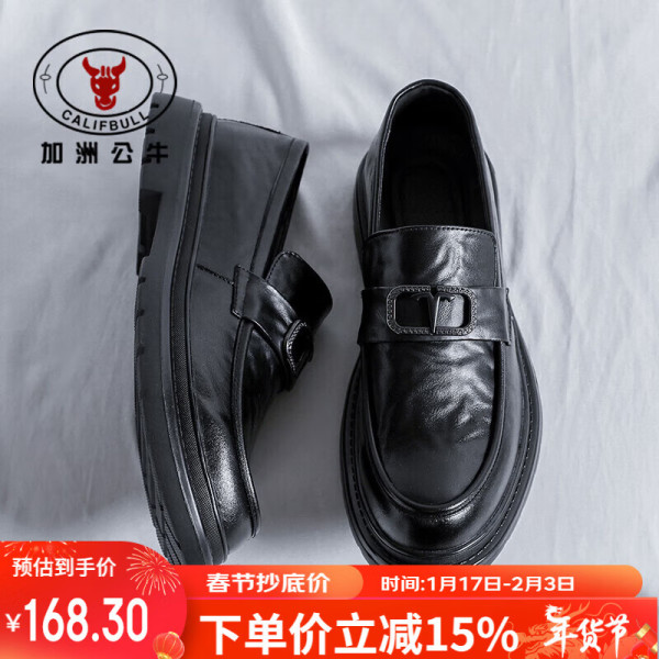 加洲公牛(CALIFBULL)秋季厚底乐福鞋百搭套脚懒人鞋商务正装休闲皮鞋男18黑色