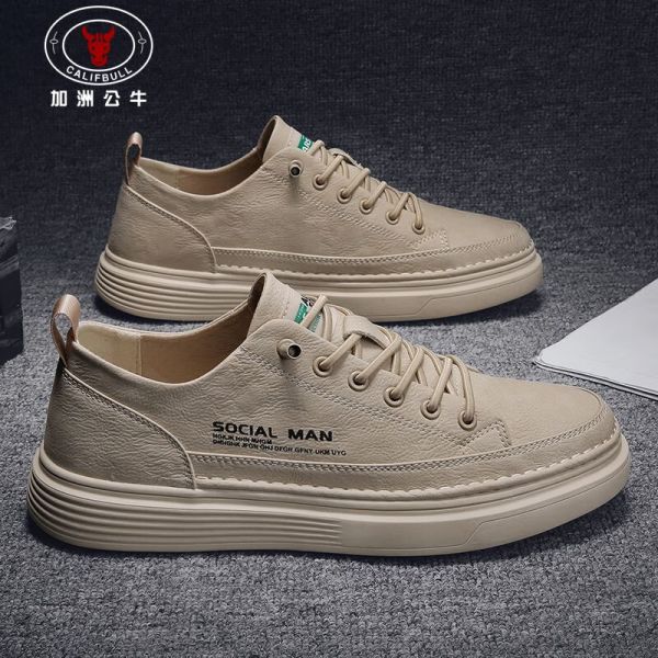 加洲公牛(CALIFBULL)休闲板鞋秋冬季男士款运动百搭增高鞋子男软底皮面小白鞋杏色40