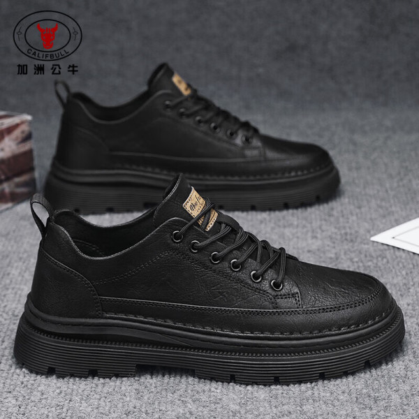 加洲公牛 CALIFBULL 男鞋春季户外休闲鞋百搭运动马丁工装皮鞋男士板鞋子男黑色41