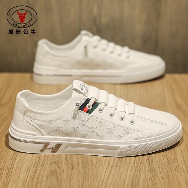 加洲公牛(CALIFBULL)男鞋夏季休闲鞋百搭运动板鞋时尚潮流小白鞋软底鞋子男白色