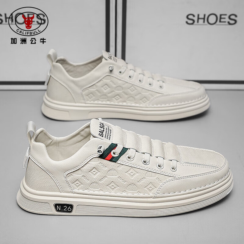 加洲公牛 CALIFBULL 春夏季男鞋休闲运动板鞋百搭防滑健步鞋子男软底皮面小白鞋白色40