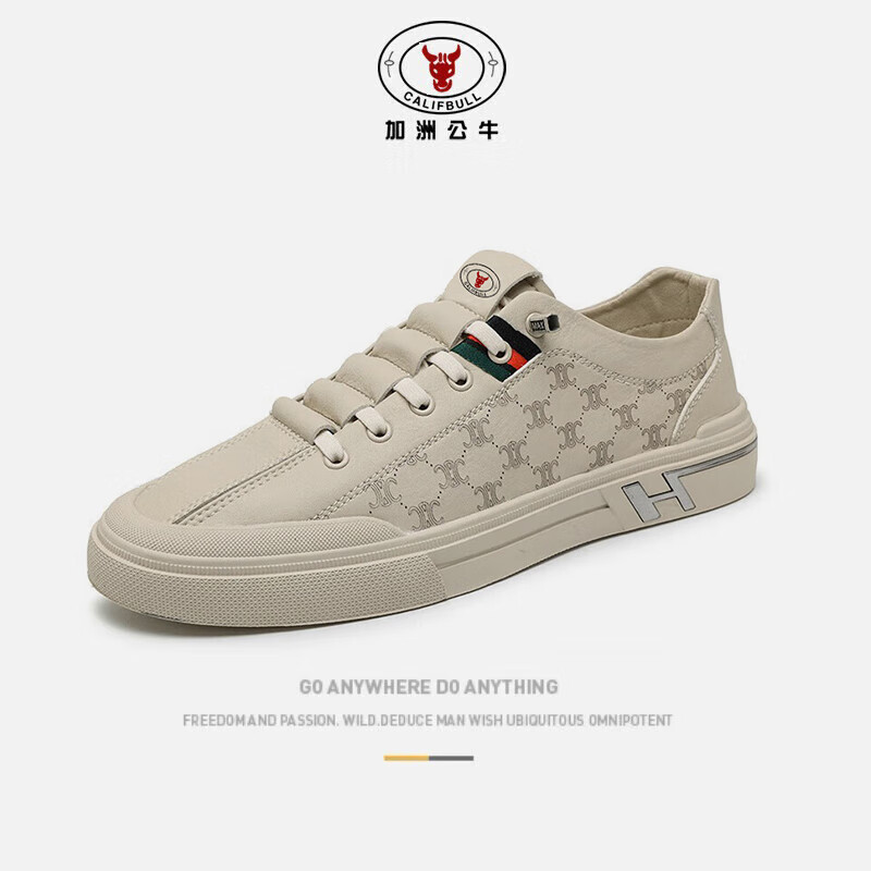 加洲公牛(CALIFBULL)休闲鞋男潮流男鞋秋冬低帮休闲皮鞋时尚百搭运动板鞋子男沙色42