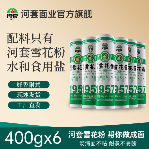 河套牌 面条营养 劲道爽滑凉面汤面 雪花挂面 400g*6盒