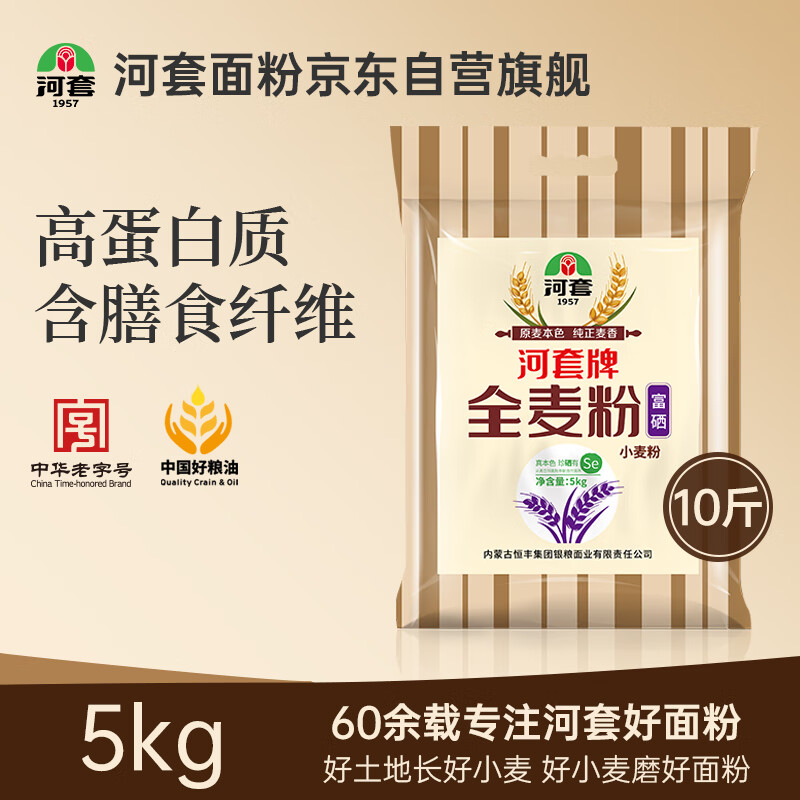 河套富硒全麦粉10斤 中华老字号小麦粉烘焙全麦面包面粉