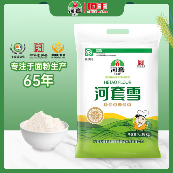 移动端、京东百亿补贴:河套牌 河套河套雪6.18kg 小麦面粉面粉馒头粉家用粉多用途粉 中华 多用途粉6.18kg
