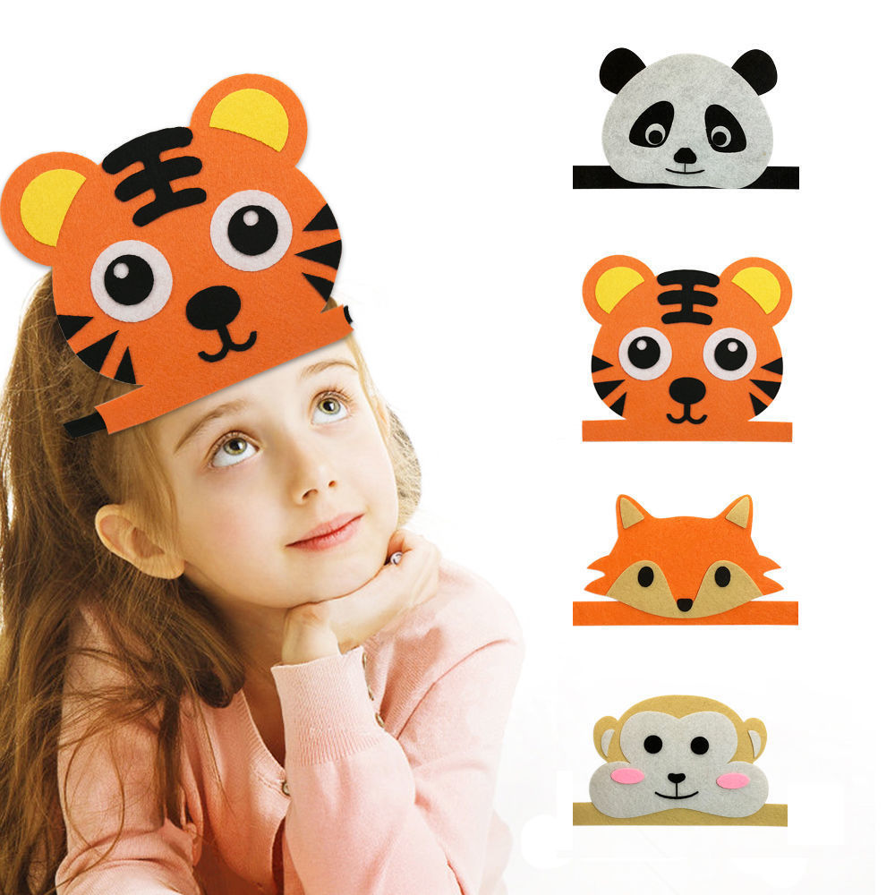儿童卡通小老虎头饰头戴式动物头套梅花鹿大灰狼幼儿园演出道具
