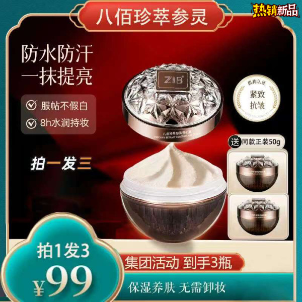 智伴 八佰珍萃参灵虫草贵妇膏提亮素颜霜美容出差必备