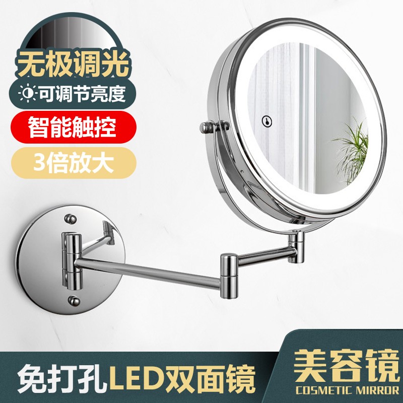 万博浴室化妆镜led带灯壁挂折叠伸缩免打孔卧室卫生间贴墙双面梳妆镜放大美容镜女生化妆触摸镜子 8寸 LED灯双镜面灯光【充电款三色】免打孔/打孔