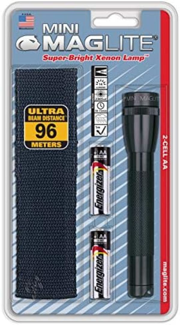MAGLITE 美光 迷你白炽 2 芯 AA 手电筒,带皮套,黑色