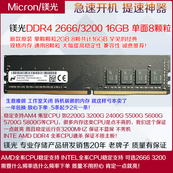 Micron镁光DDR4 4G 8G 16g 2400 2666四代台式机内存条兼英睿达
