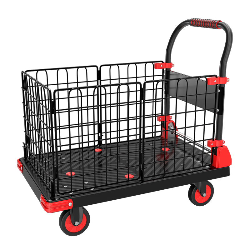 博云小推车拉货围栏车手推车平板车搬运网架手拉车折叠带护栏笼车BY11